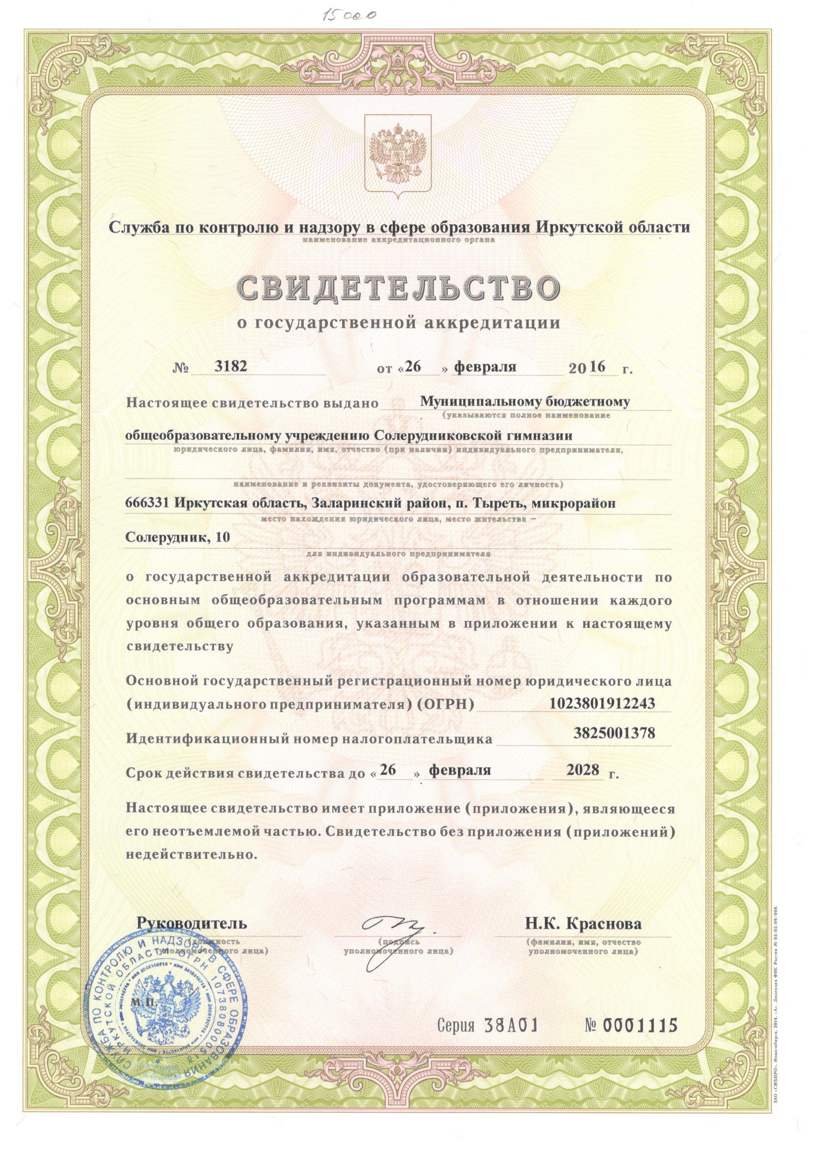 Срок действия государственной аккредитации по образовательной программе основного общего образования – до 26.02.2028г.